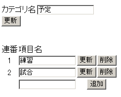カテゴリは、スケジュールに様々な属性を持たせたい時に使用します。作成したカテゴリで予定を絞り込んで表示することが可能です。例えば、草野球なら「活動内容」というカテゴリを作成し、「練習」「試合」といった項目を作成すると便利になるかと思います。