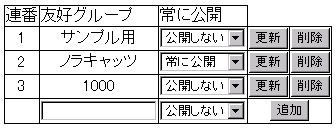 「公開」に表示されているグループのチェックボックスにチェックを入れると、そのスケジュールが友好グループに表示されるようになります