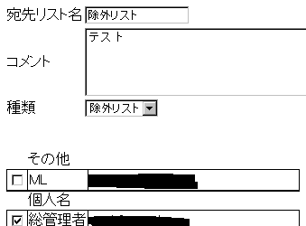 「除外リスト」を作成すると、スケジュールをメールで通知する際に除外したい宛先を選択できます。